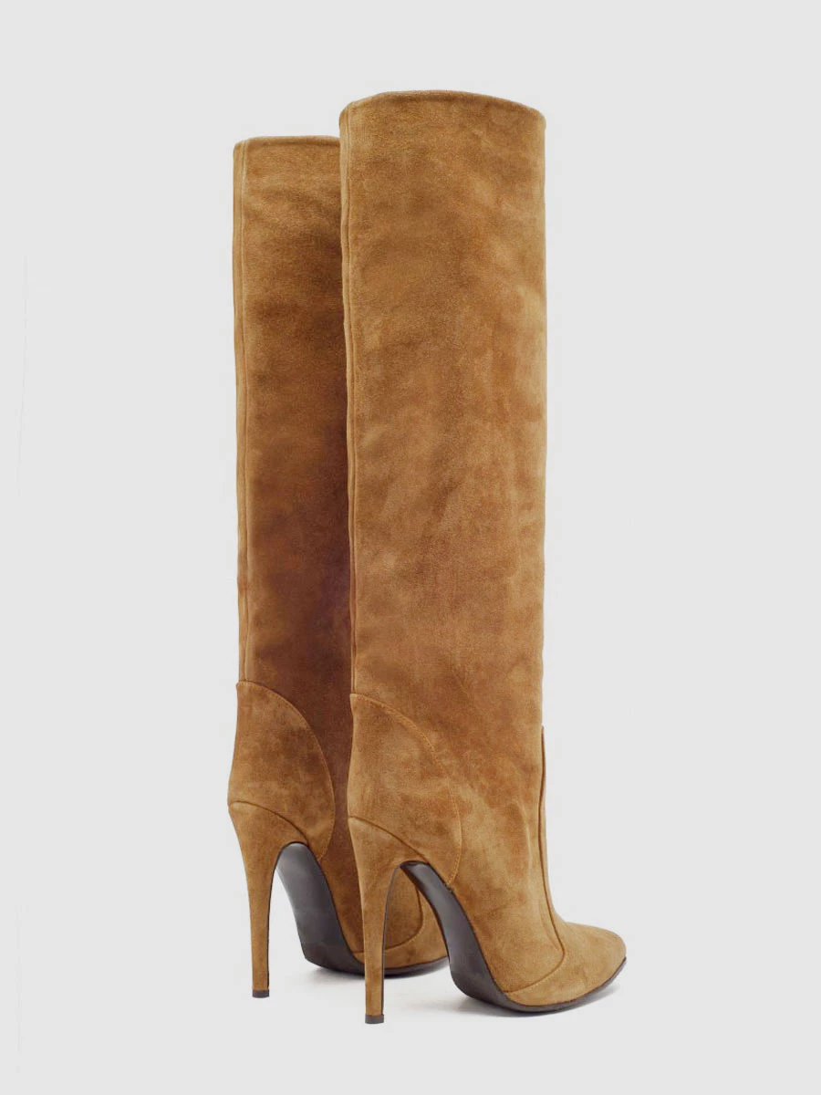 Women ‘s Wide Calf Boots Suede Stiletto Heel Knee High Boots