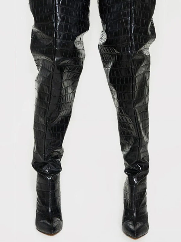 Be the first to review “Women’s Wide Stone Grain Chunky Heel Bright Leather Thigh High Boots” Cancel reply