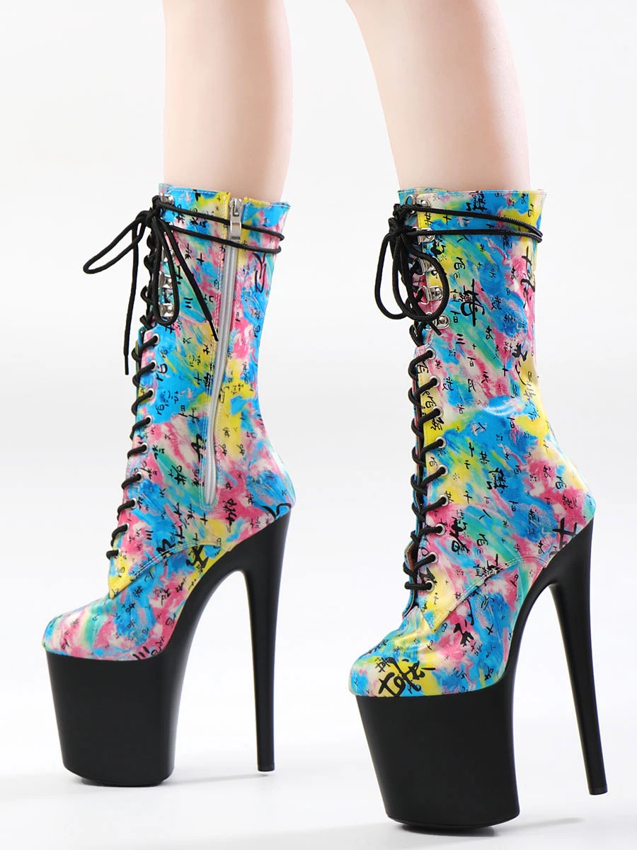 Sexy Pole Dance Shoes High Heel Platform Lace Up Pleaser Boots