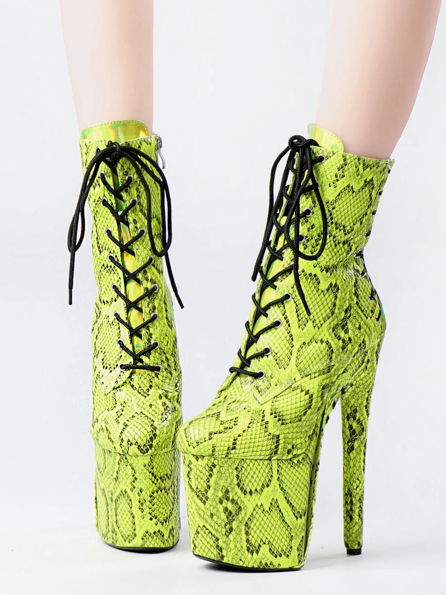 Women Sexy Boots Round Toe Lace Up Snake Print Stiletto Heel Rave Club Green Thigh High Boots Over The Knee Boots