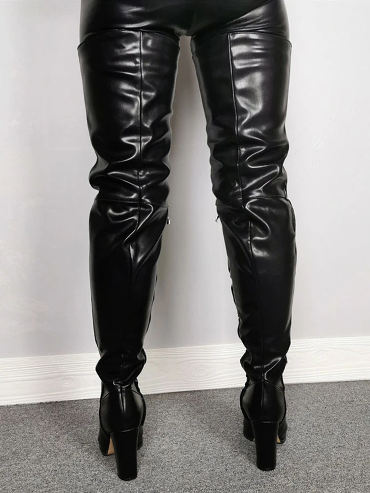 Women Sexy Thigh High Boots Round ToeChunky Heel Rave Club Black Over The Knee Boots