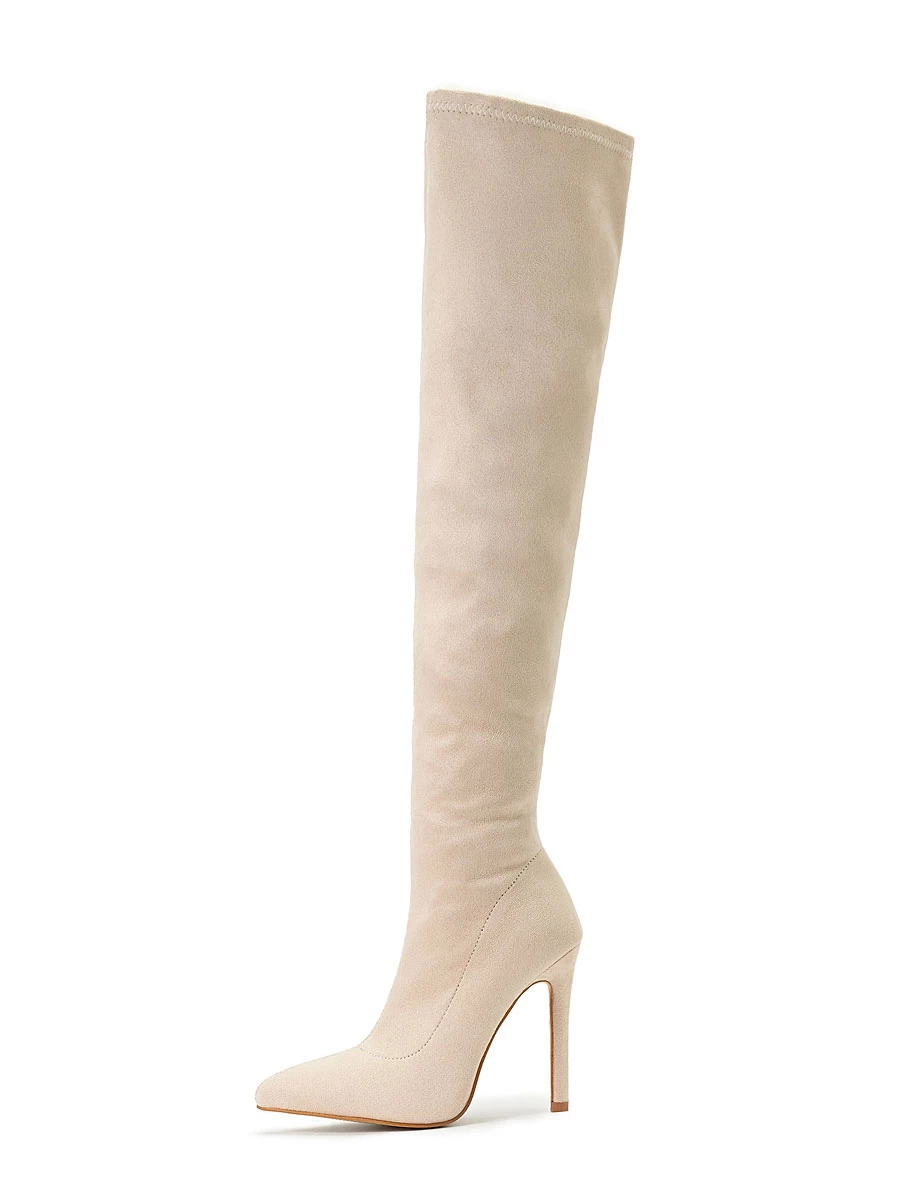 Women Thigh High Boots Stiletto Heel Pointed Toe Micro Suede Upper Burgundy Over The Knee Boots